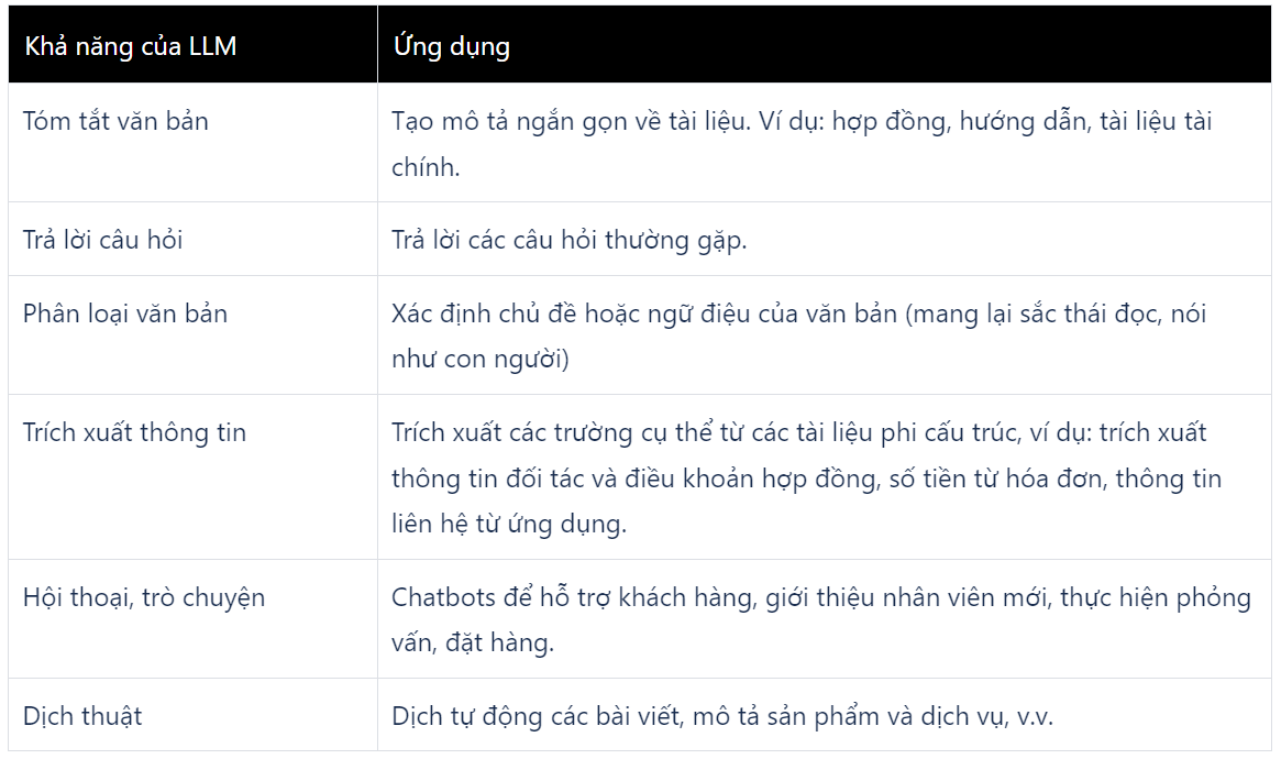 LLM rất phù hợp cho các nhu cầu làm việc với văn bản: