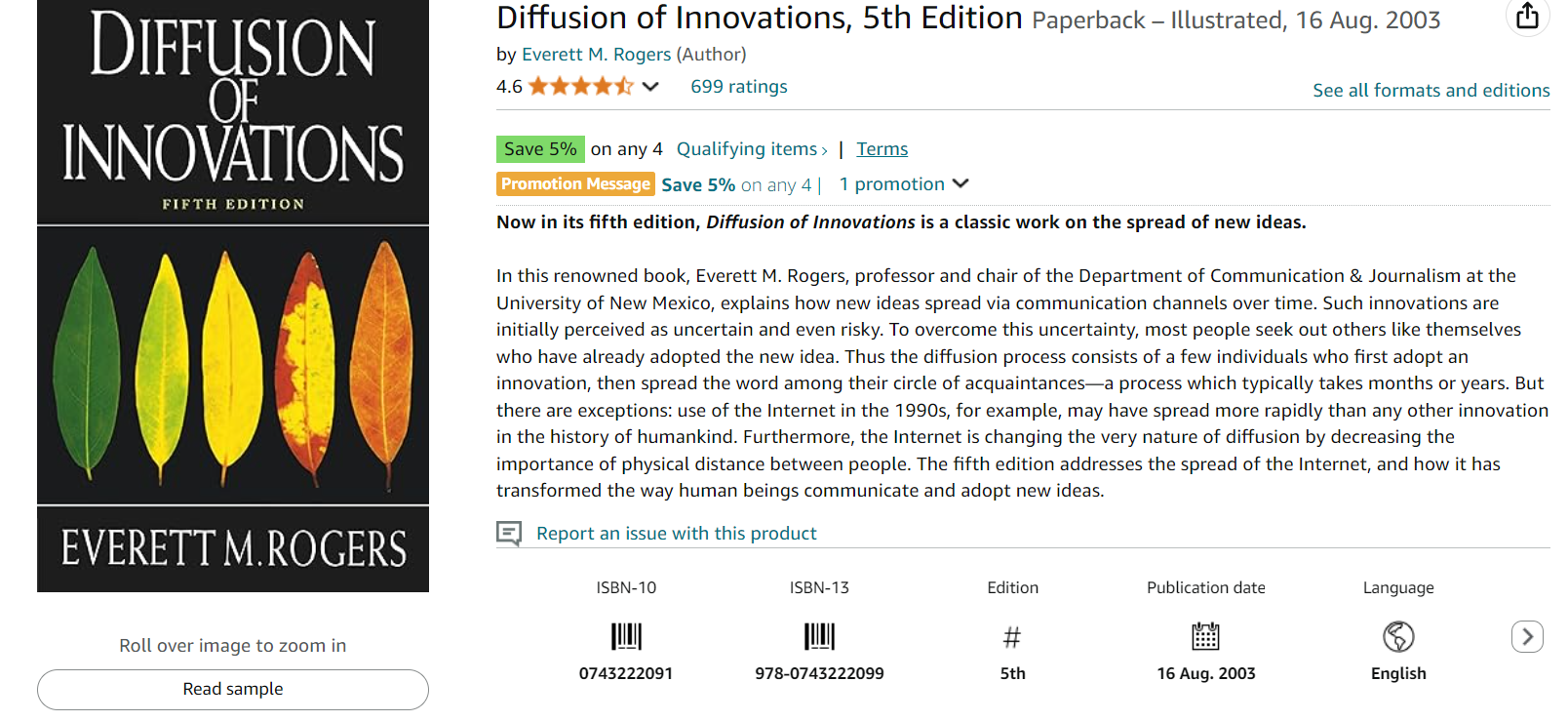 Đầu tiên là cuốn sách có tựa đề Diffusion of Innovations