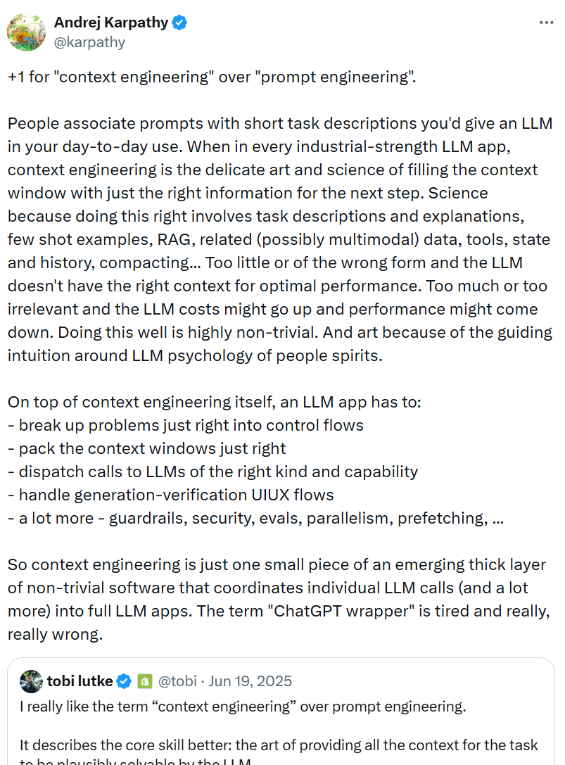 Thực ra, Context Engineering không phải là một khái niệm hoàn toàn mới. Đây là sự đồng thuận dần hình thành trong ngành cùng với làn sóng AI Agent năm 2025.